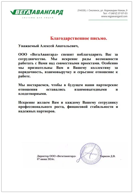 Благодарственные письма